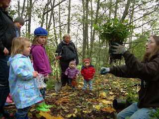 Today a group of toddlers came out and helped to plant several 1-gallon potted Salal in the West Duwamish Greenbelt. Assisted by their parents, they learned how to plant and water our little native friends. These plants are close in age with these little ones and as they grow up, the Salal they planted will grow too. It will be interesting to see which of the two gets taller first!